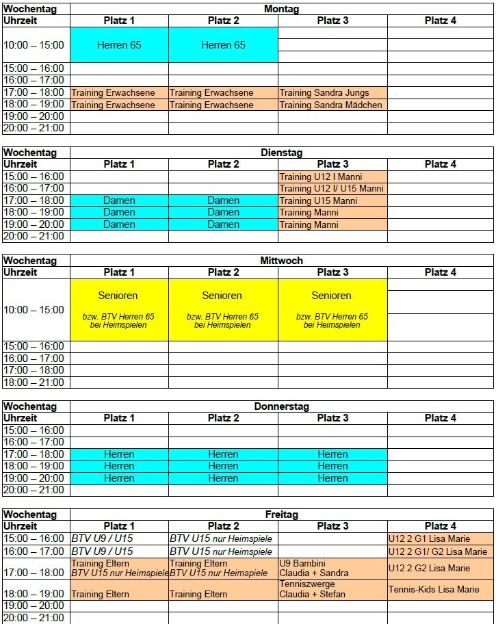 Saison Trainingszeiten 2026